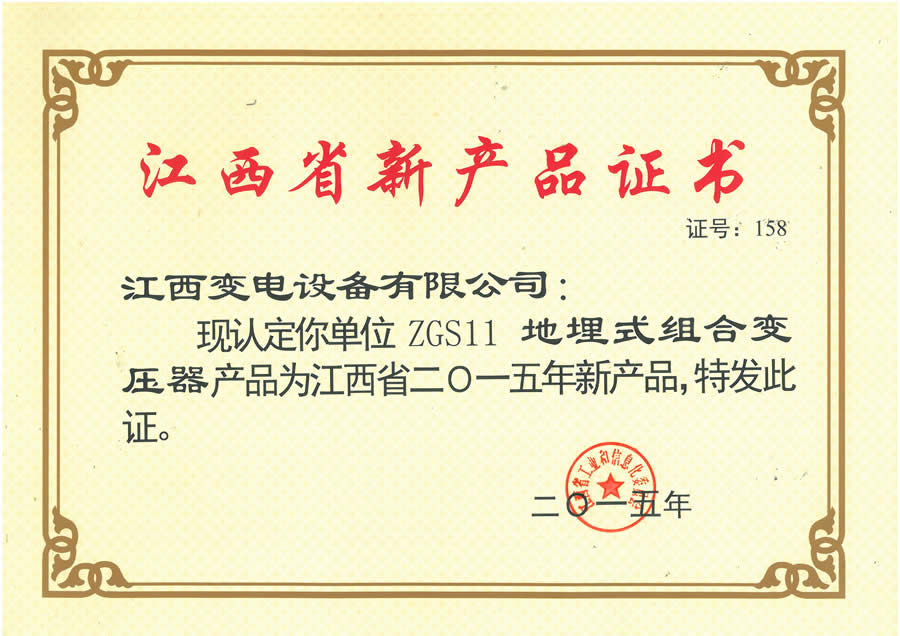 江西省新产品证书:ZGS11地埋式组合变压器(点击下载)