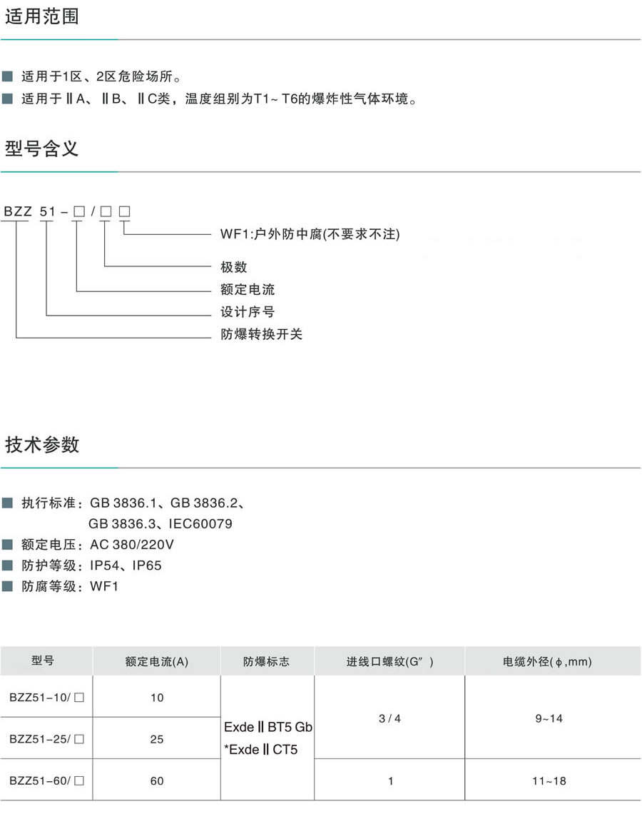 > BZZ51系列隔离型防爆转换开关(ⅡB、ⅡC)