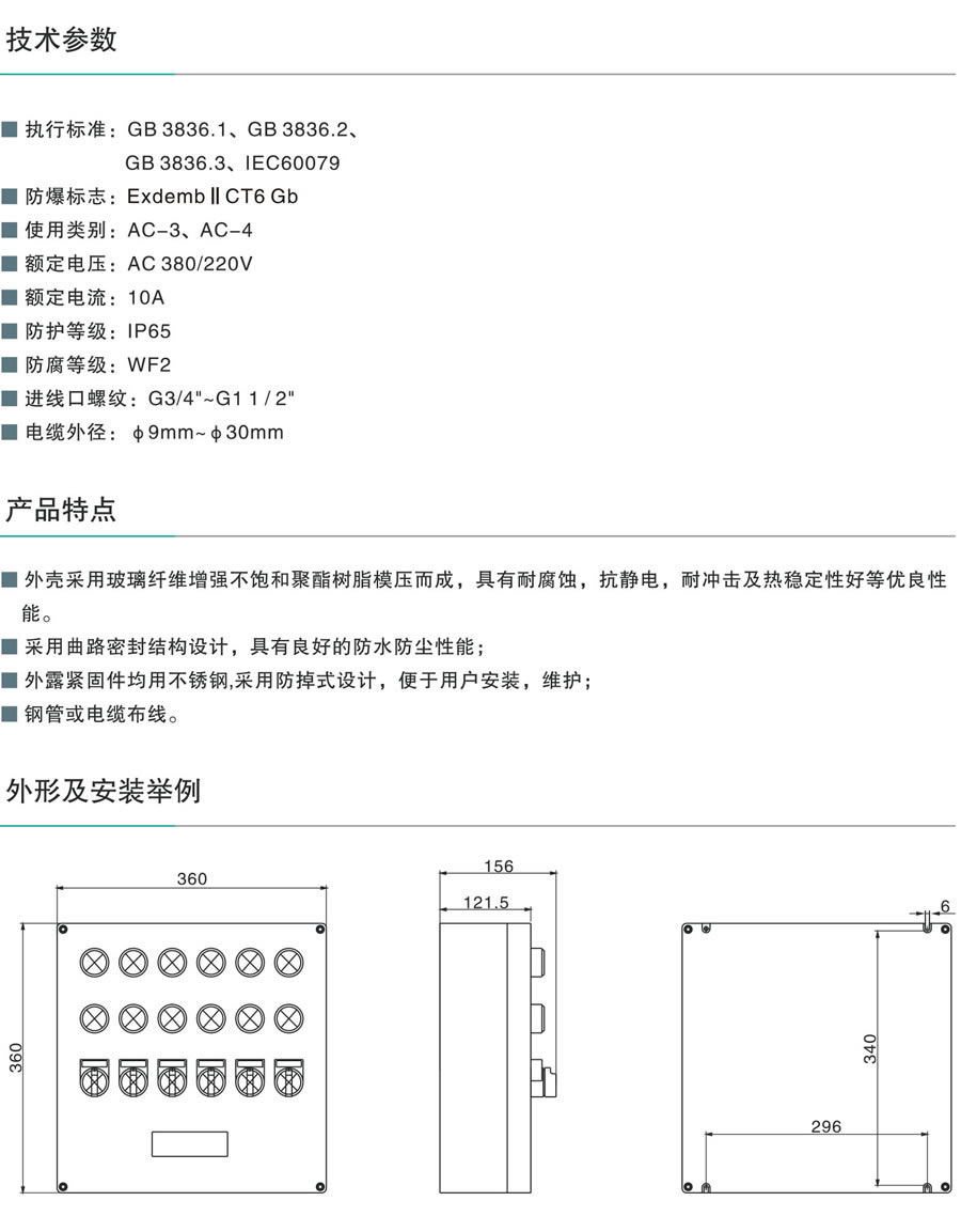 适用于1区、2区危险场所。 适用于ⅡA、ⅡB、ⅡC类,温度组别为T1~T6的爆炸性气体环境。