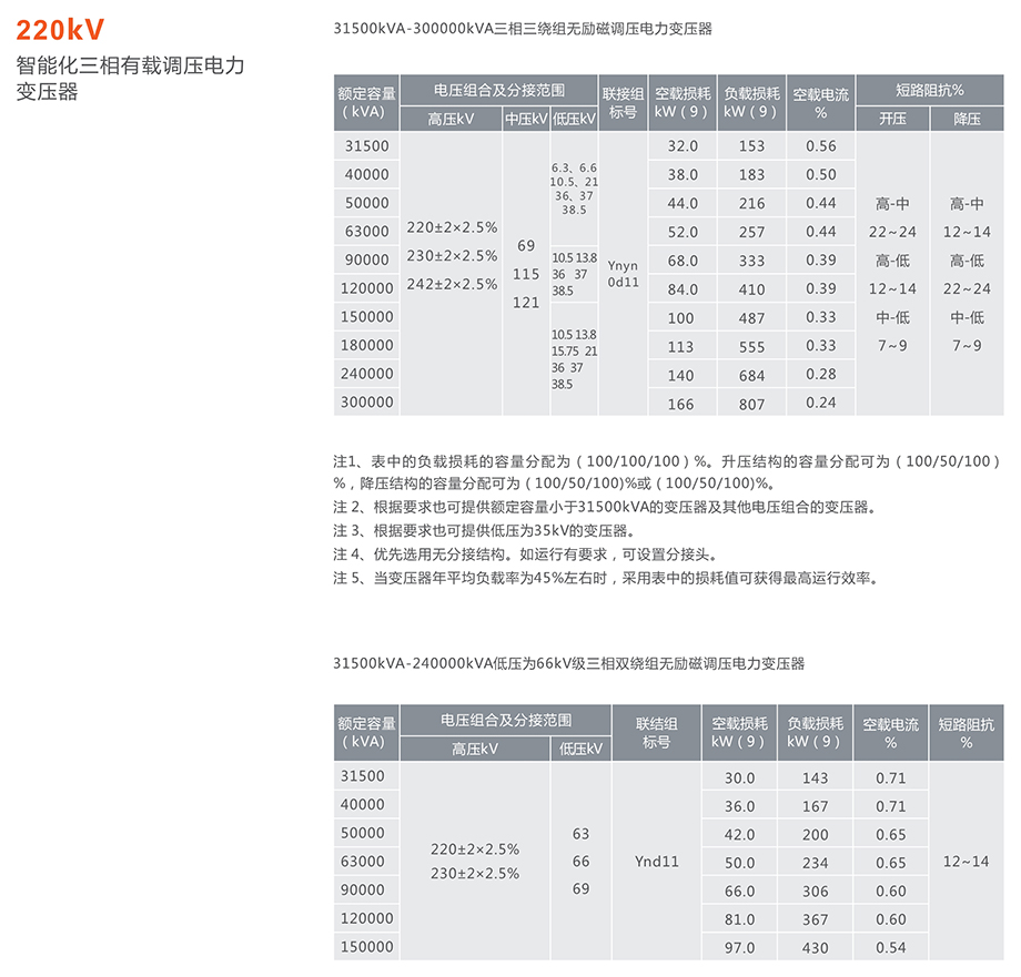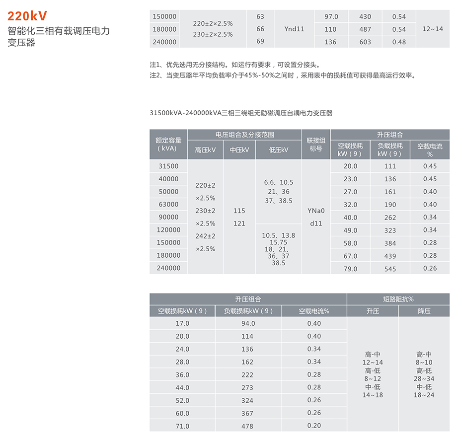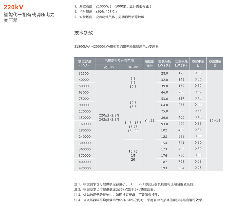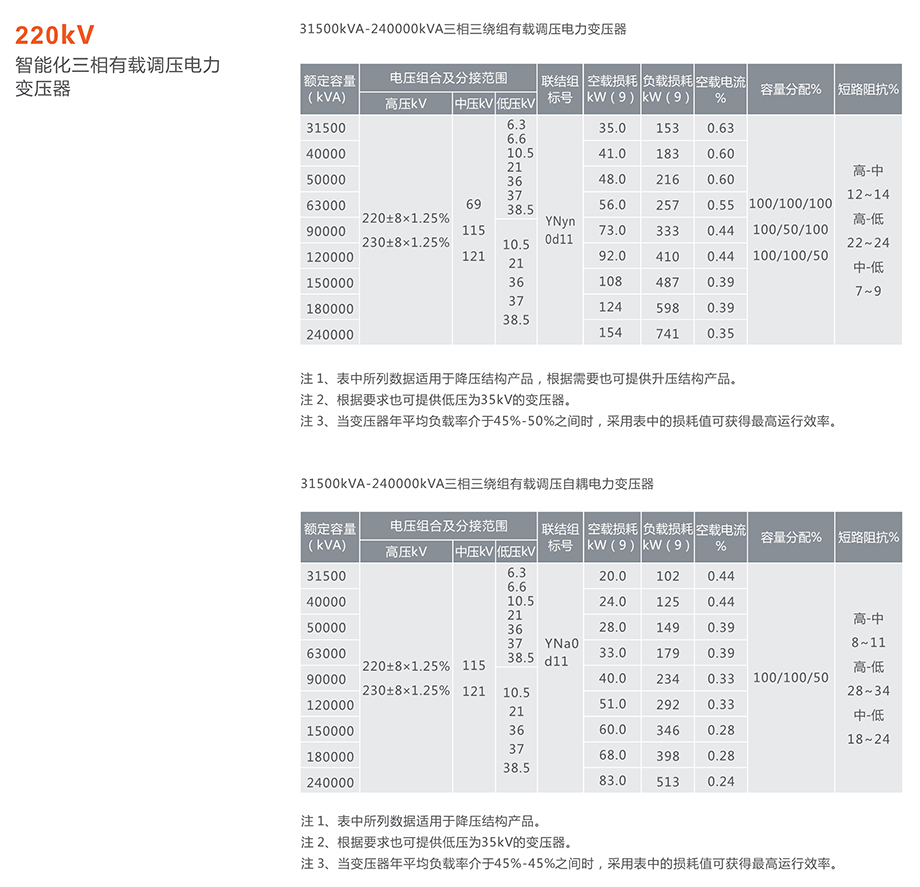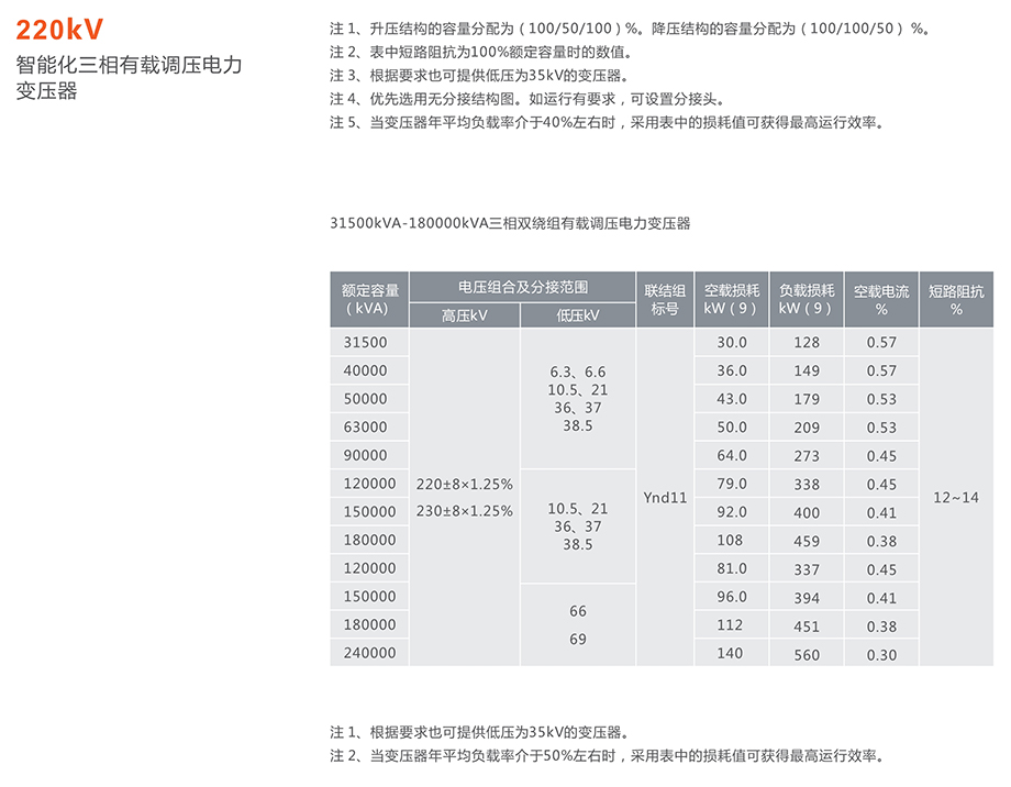220kV级三相油浸式有载调压电力变压器,在材料、工艺、结构上采取了一系列重大改革,具有体积小,重量轻,效率高,损耗低,噪声低,运行可靠的特点,可减少大量的电网损耗和运行费用,经济效益显著。适用于发电厂、变电站、大型厂矿企业等