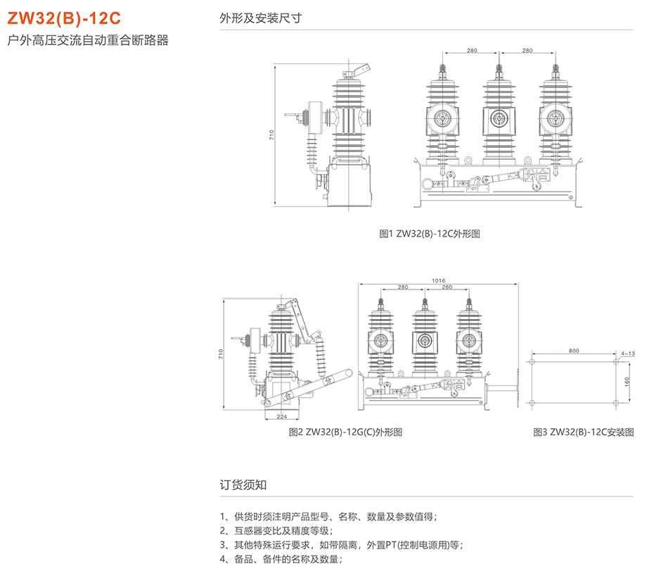 > ZW32(B)-12C户外高压交流自动重合断路器