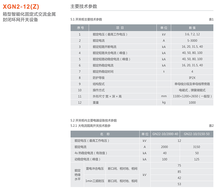 XGN2-12(Z)箱型固定式交流金属封闭开关设备(简称开关柜),是按国家标准GB3906《3~35kV交流金属封闭开关设备》设计的,符合国际电工委员会IEC298《交流金属封闭开关设备和控制设备》标准,满足DL402、DL404标准,达到“五防”闭锁要求