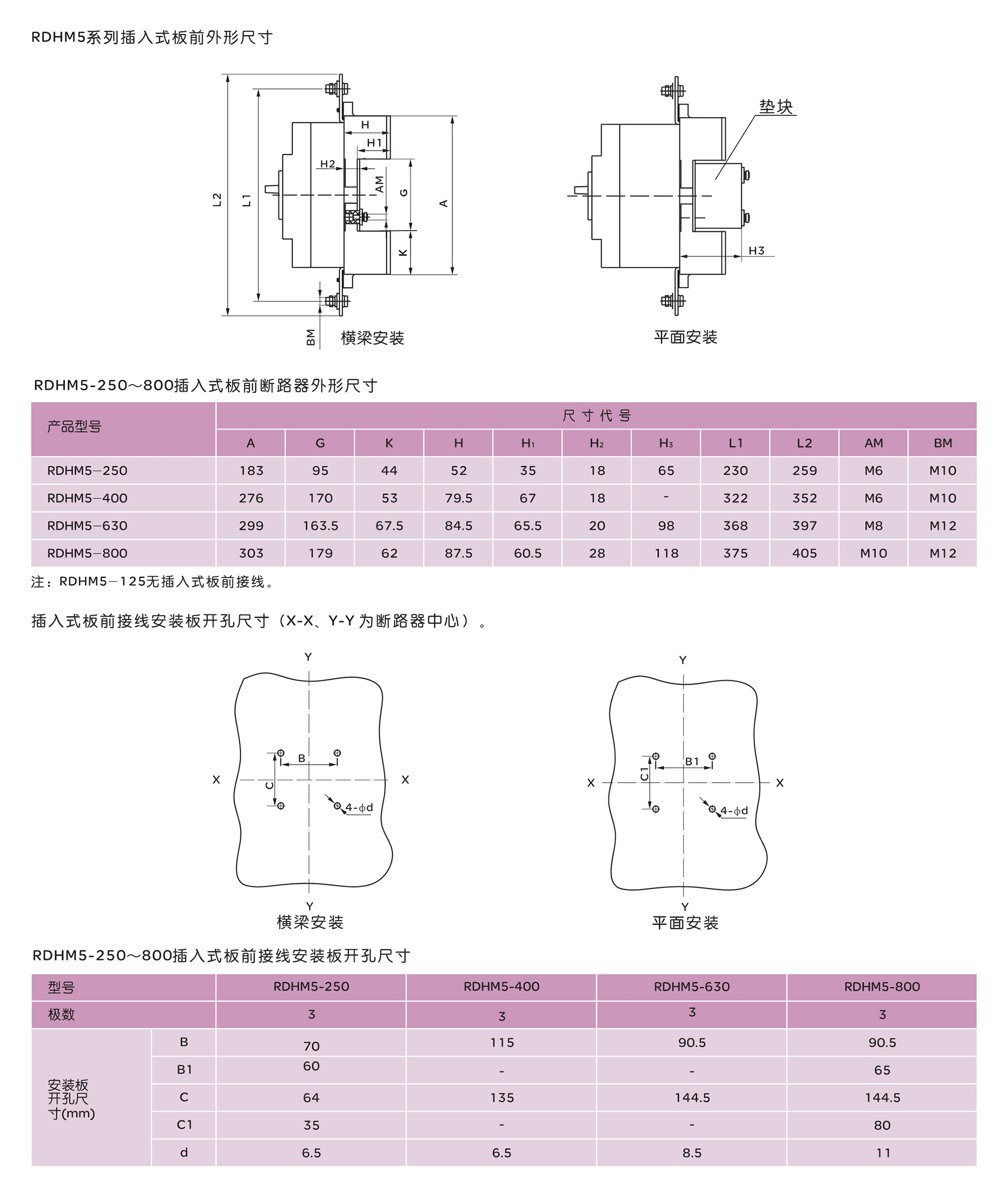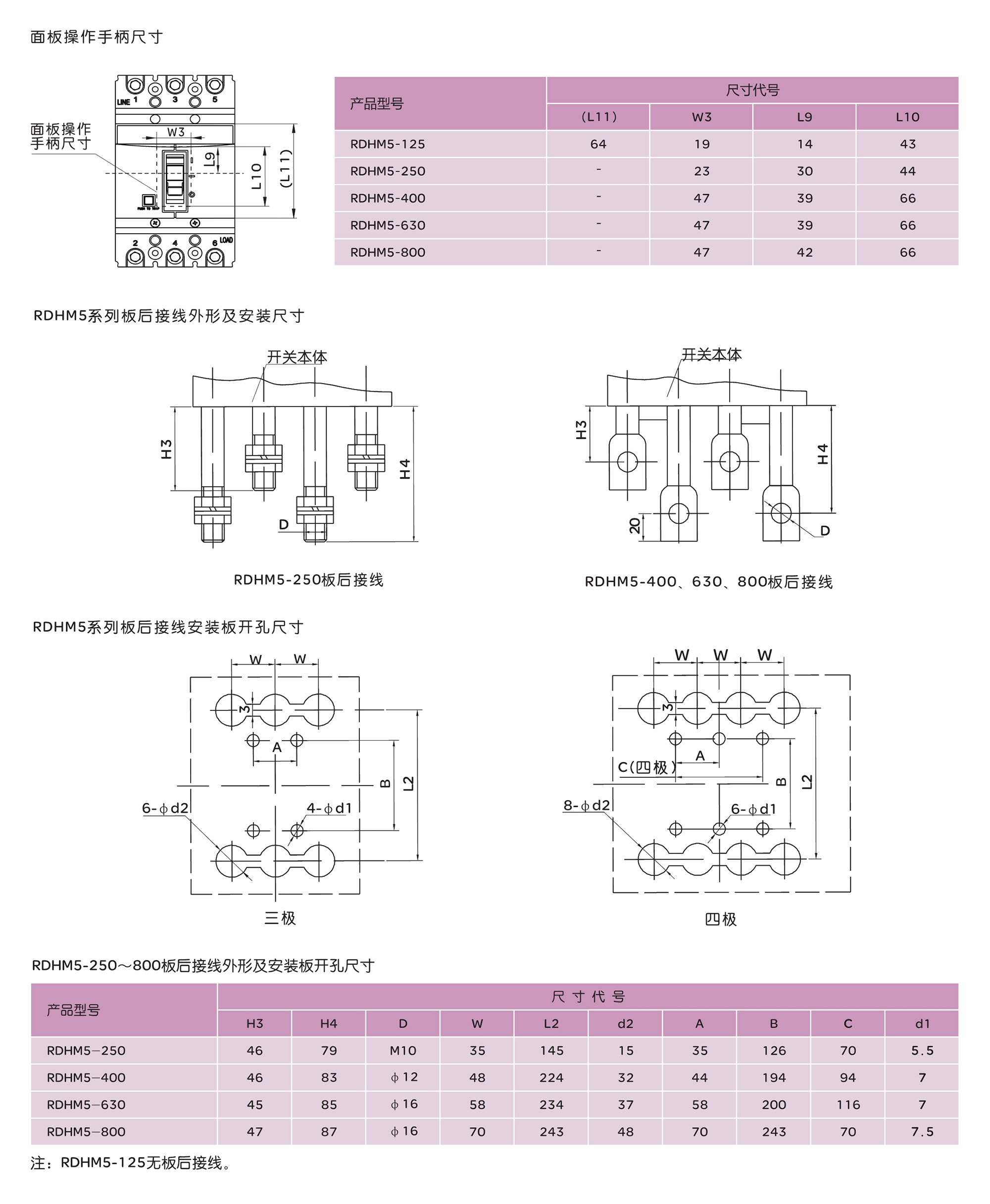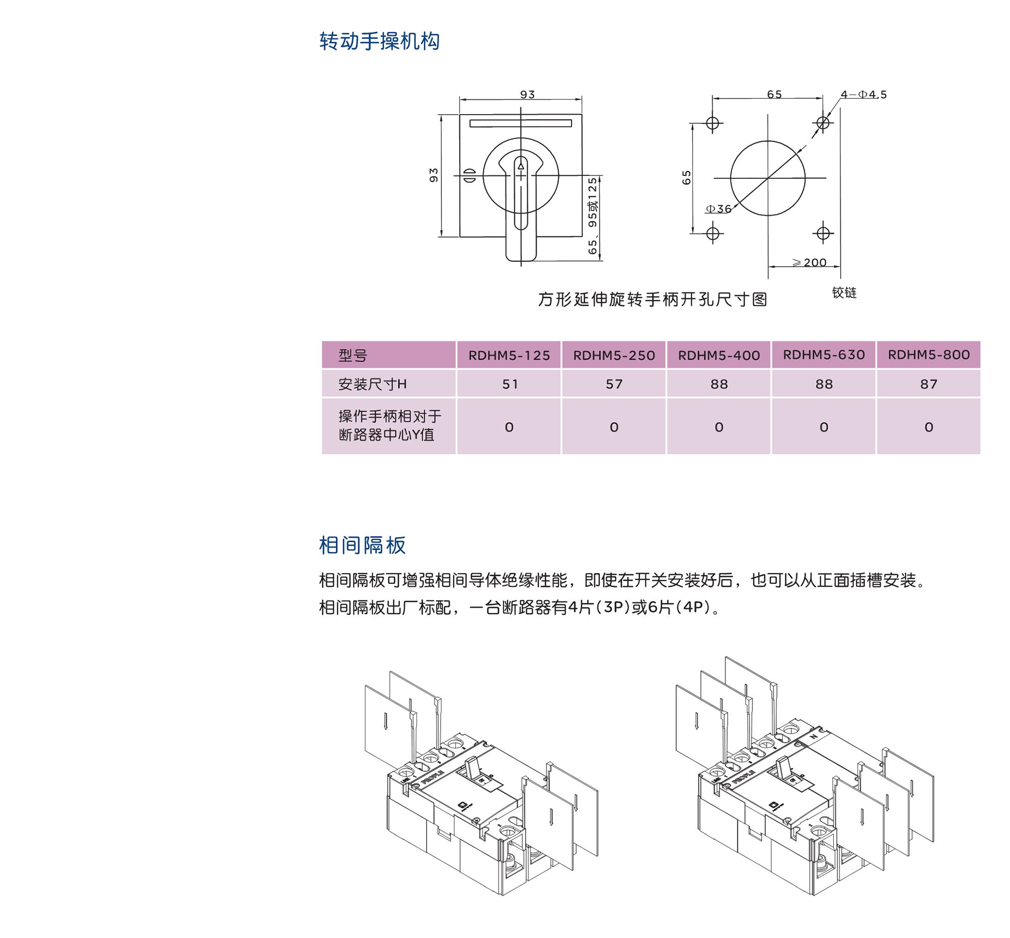 RDHM5系列隔离开关(以下简称开关)。适用于交流50Hz/60Hz额定电压690V及以下,额定电流至800A的电路中,主要用于通断电阻性负载,包括适当过负载,作线路与电源隔离之用。尤其适合线路检修时有效隔离电源并防止意外合闸,以确保检修人员的操作安全。 开关可垂直安装(即竖装),亦可水平安装(即横装)。 开关适用于隔离,产品符合:GB/T 14048.3 标准 。