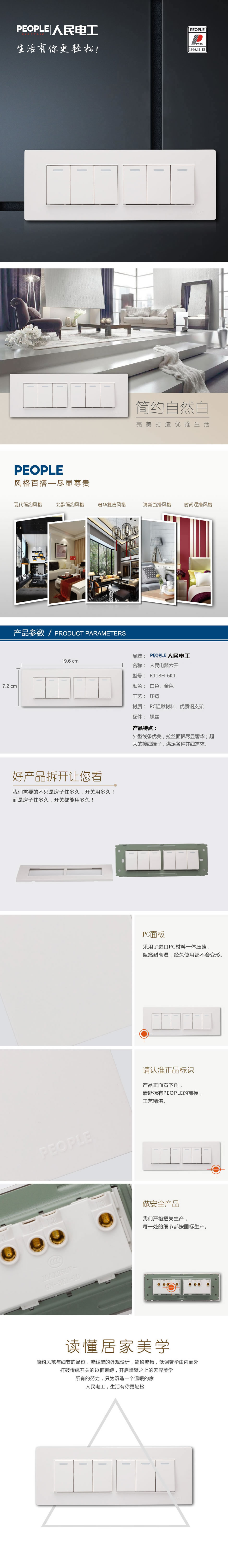 型号:R118H-6K1(单控)、R118H-6K2(双控) 六联开关;颜色:白色,金色