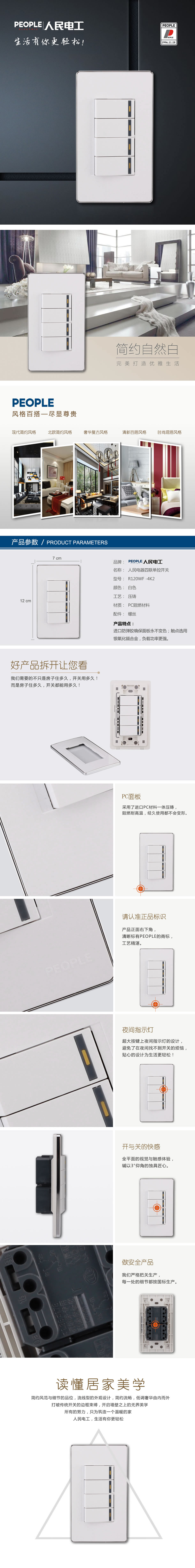 型号:R120WF-4K2 四联双控开关;颜色:白色