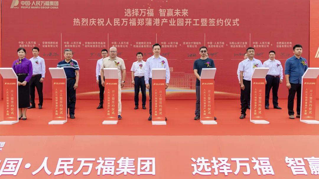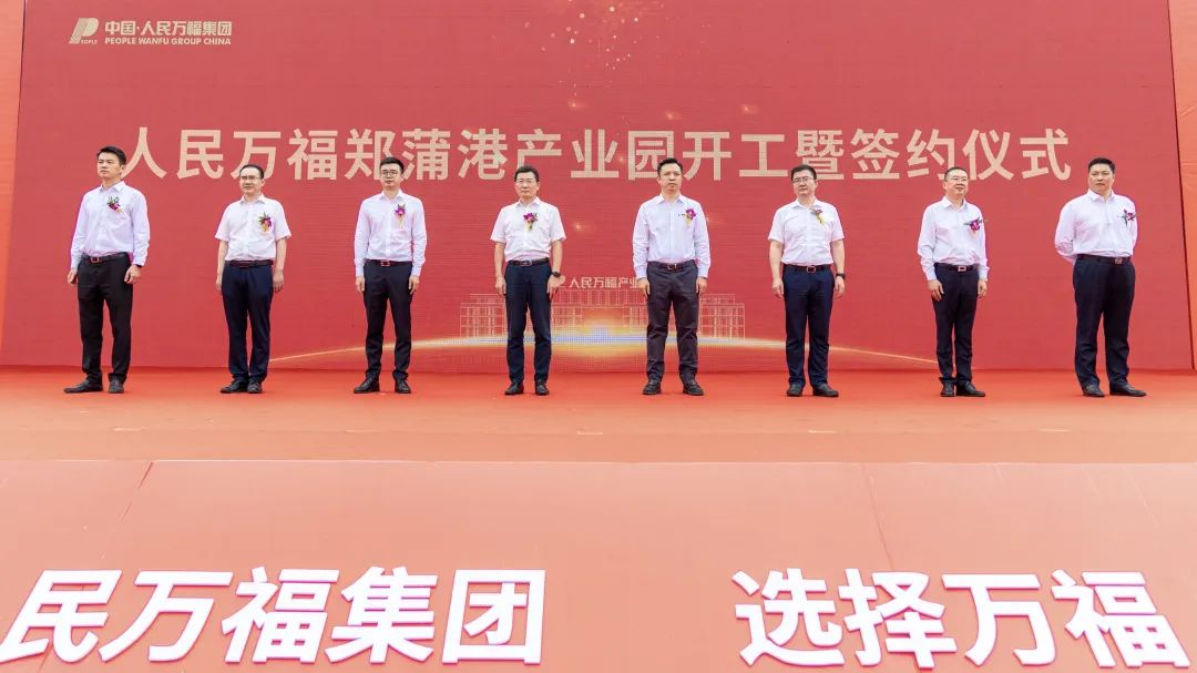 春华秋实,金风送爽。9月19日,人民万福郑蒲港产业园开工暨签约仪式隆重举行。马鞍山市人民政府常务副市长黄化锋,郑蒲港新区党工委副书记、管委会副主任沙德宏等政府领导莅临仪式现场;人民控股集团副董事长、人民万福集团董事长郑纬宇,人民电器集团董事长郑经洁,人民产业集团董事长陈林锋,人民供应链集团董事长黄飞鸣,人民金控集团董事长叶向宇等集团领导出席开工仪式。