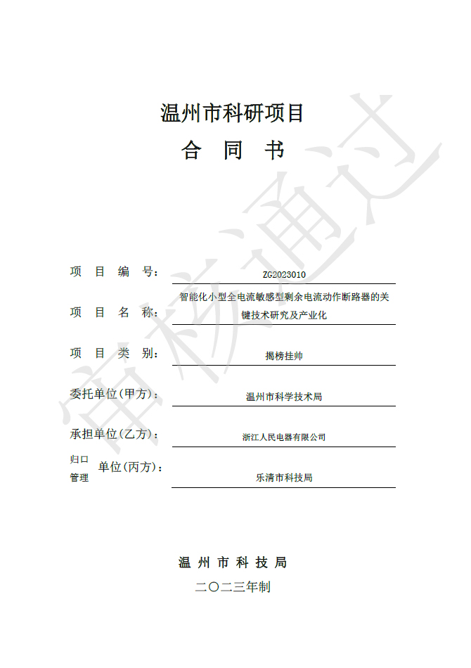 近日,中国·人民电器集团浙江公司收到温州市科学技术局印发的《关于2023年温州市重大科技创新攻关项目立项和下达相关补助资金的通知》,这意味着浙江公司揭榜的重大科技项目将正式进入具体实施阶段。