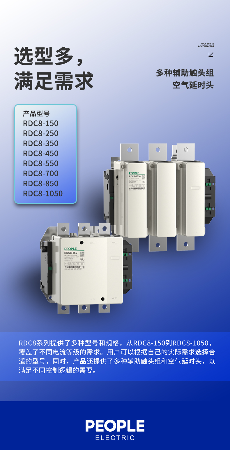 通知丨人民电器RDC8交流接触器新增850A和1050A壳架