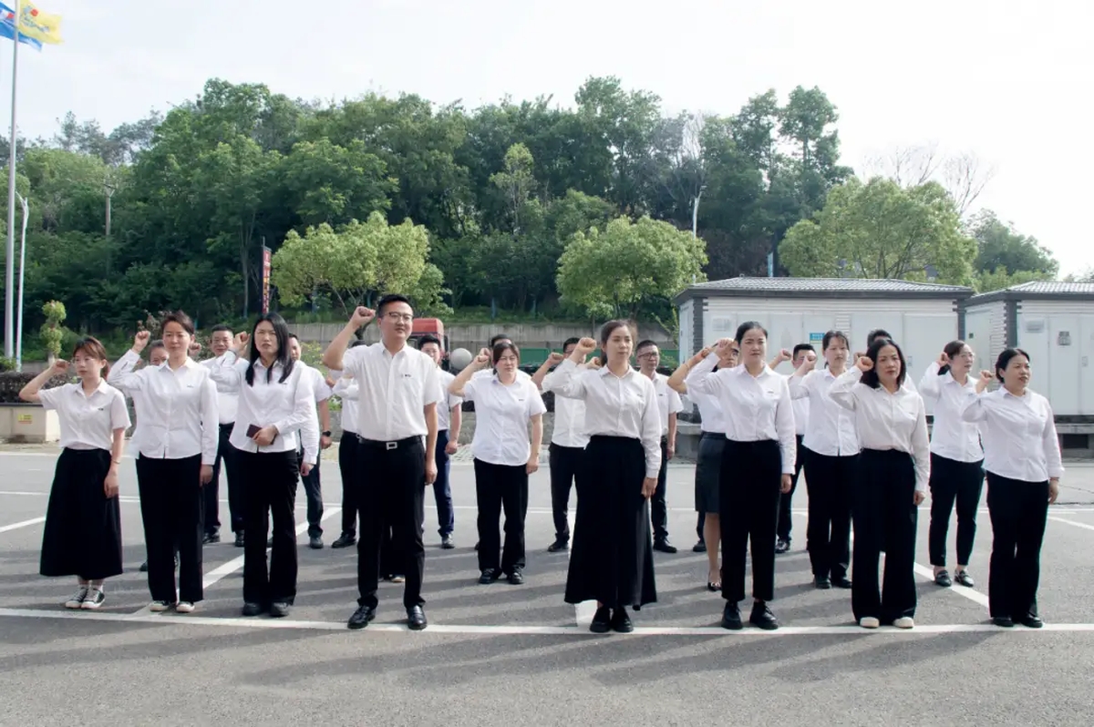 监事长徐顺崇带领全员宣读环保誓词,全体员工整齐站立,庄严宣誓,声音洪亮而坚定,表达了他们对环保事业的执着追求和为环保目标不懈奋斗的决心。